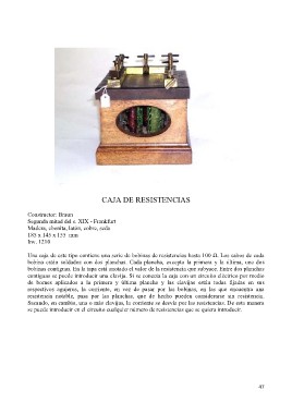 Una caja de este tipo contiene una serie de bobinas de resistencias hasta 100 Ω. Los cabos de cada